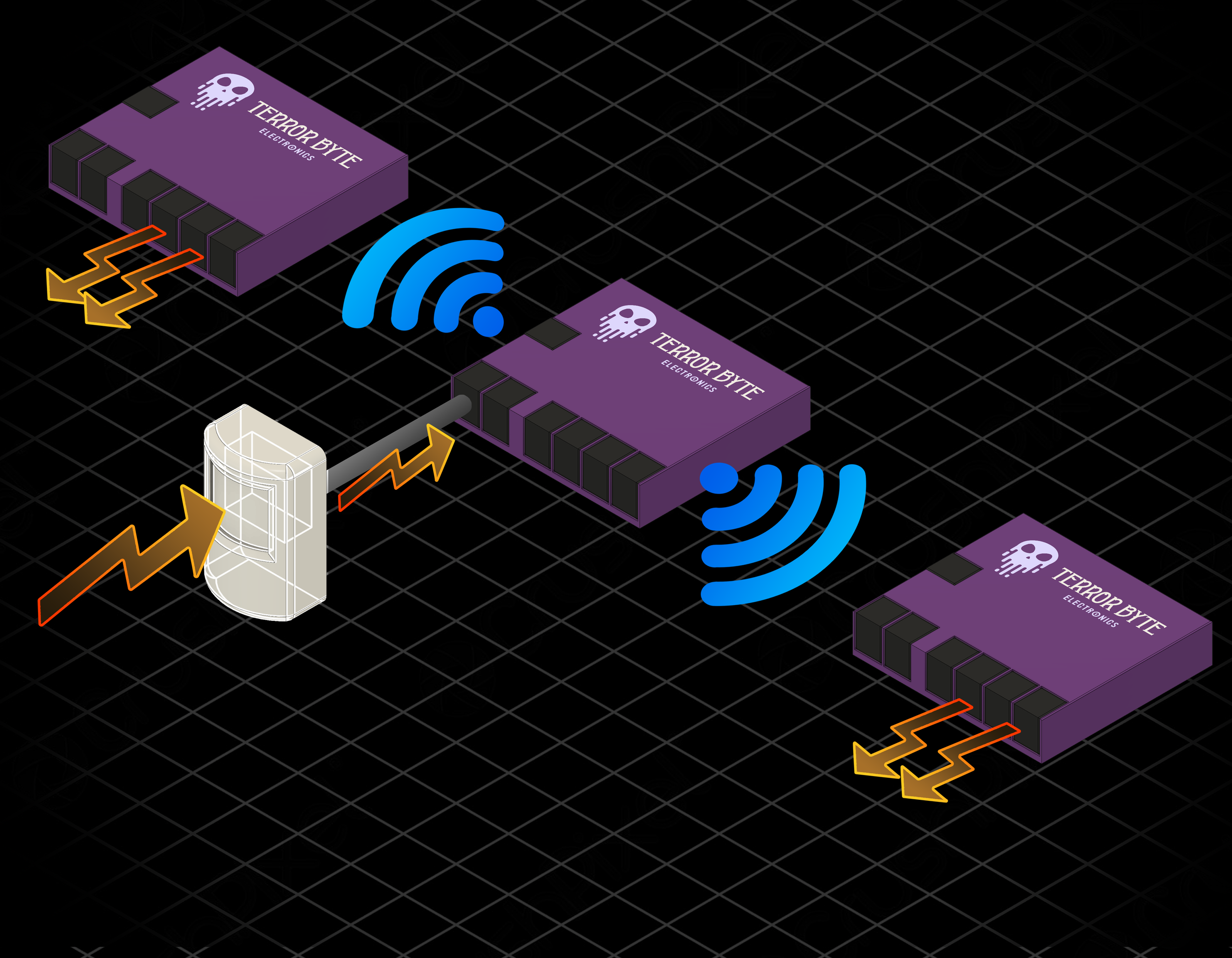 Our controllers communicate directly with each other over 2.4Ghz to coordinate shows.